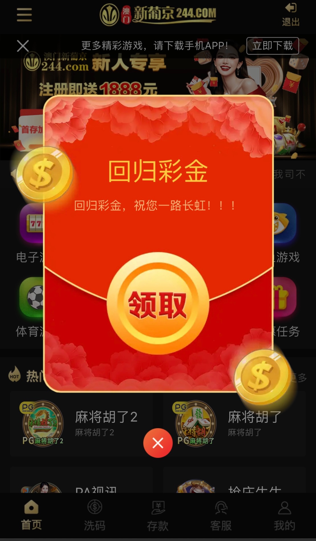 有充值过过的兄弟可以登入上去看看有没有弹窗显示红包